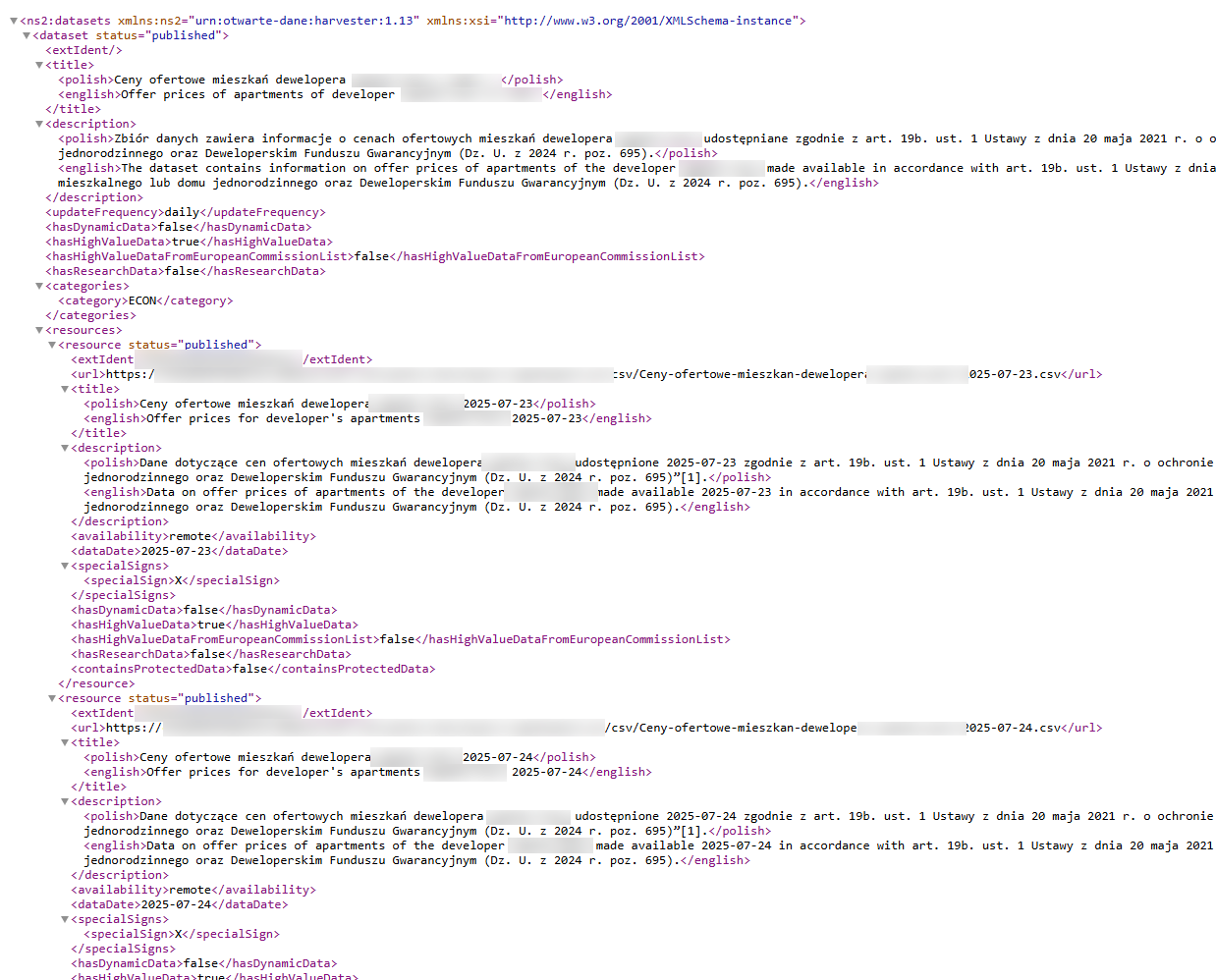 Integracja polega na codziennym przesyłaniu danych o cenach lokali do systemu dane.gov.pl. Nasza aplikacja automatycznie pobiera dane z Twojej strony, przetwarza je zgodnie z wymaganym formatem i wysyła do rządowego systemu. Dzięki temu spełniasz obowiązki wynikające z ustawy o ochronie praw nabywcy lokalu.